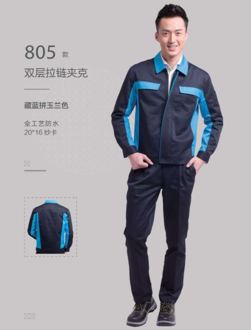803双层拉链藏蓝拼枣红涤棉纱卡